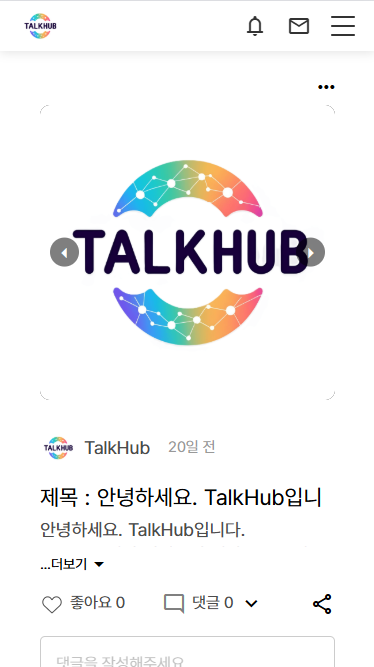 TalkHub는 일상의 기록과 실시간 소통에 초점을 맞춘 소셜 플랫폼으로, PC와 모바일 버전을 모두 지원하여 언제 어디서든 편리하게 사용할 수 있습니다.