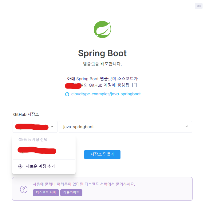 - 만약에 배포할 리포지토리가 안보인다면 새로운 계정 추가를 누르고 접속합니다.