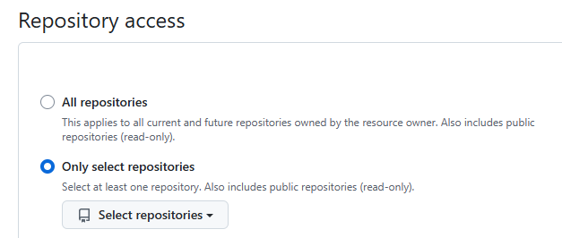 - Select repositories에서 선택하여 추가한 후에 저장 버튼을 클릭합니다.