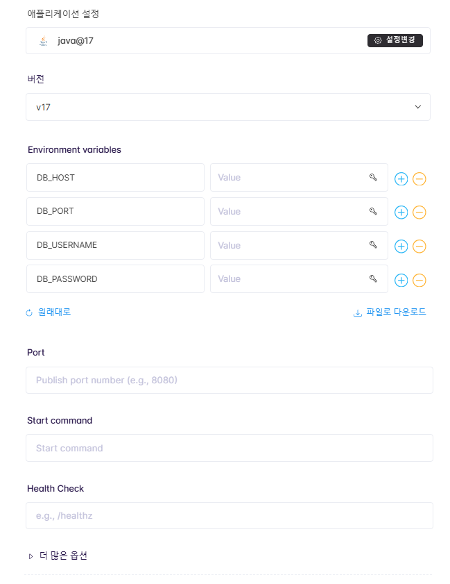 - DB_HOST와 DB_PORT는 내부 접속용을 입력해 주세요.